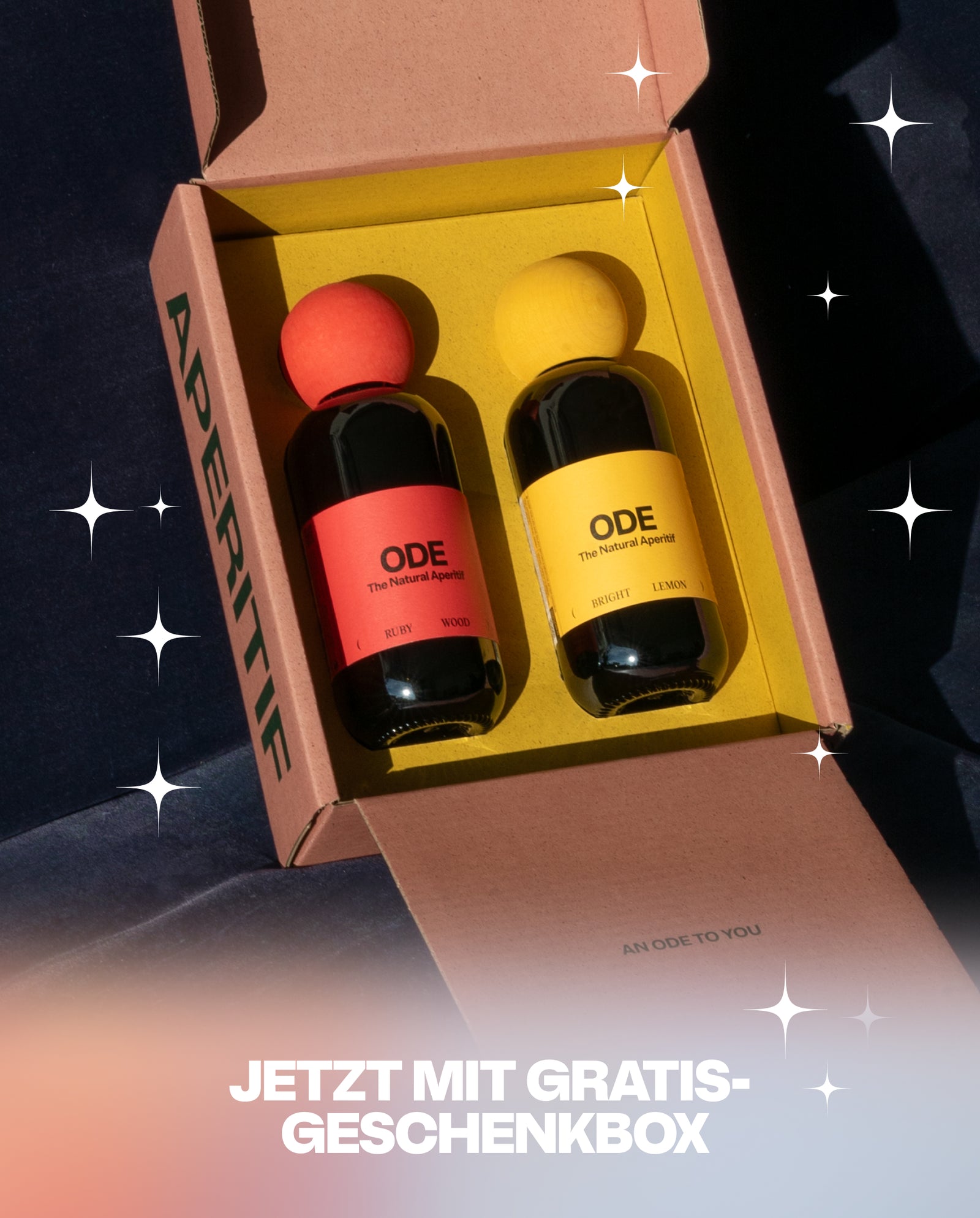 Der Apéritif ist ein zeitloses Ritual aus Frankreich und Italien, das die Sinne belebt und den Abend einläutet. Bei ODE haben wir diese Tradition mit unseren eigenen Kreationen neu interpretiert — Bright Lemon für einen erfrischend spritzigen Genuss und Ruby Wood für eine tiefere Note. Egal, ob du entspannt den Abend beginnst oder bei Gesprächen in geselliger Runde, unsere Apéritifs begleiten dich leicht und unbeschwert vom ersten Schluck bis zum letzten Licht des Tages.
