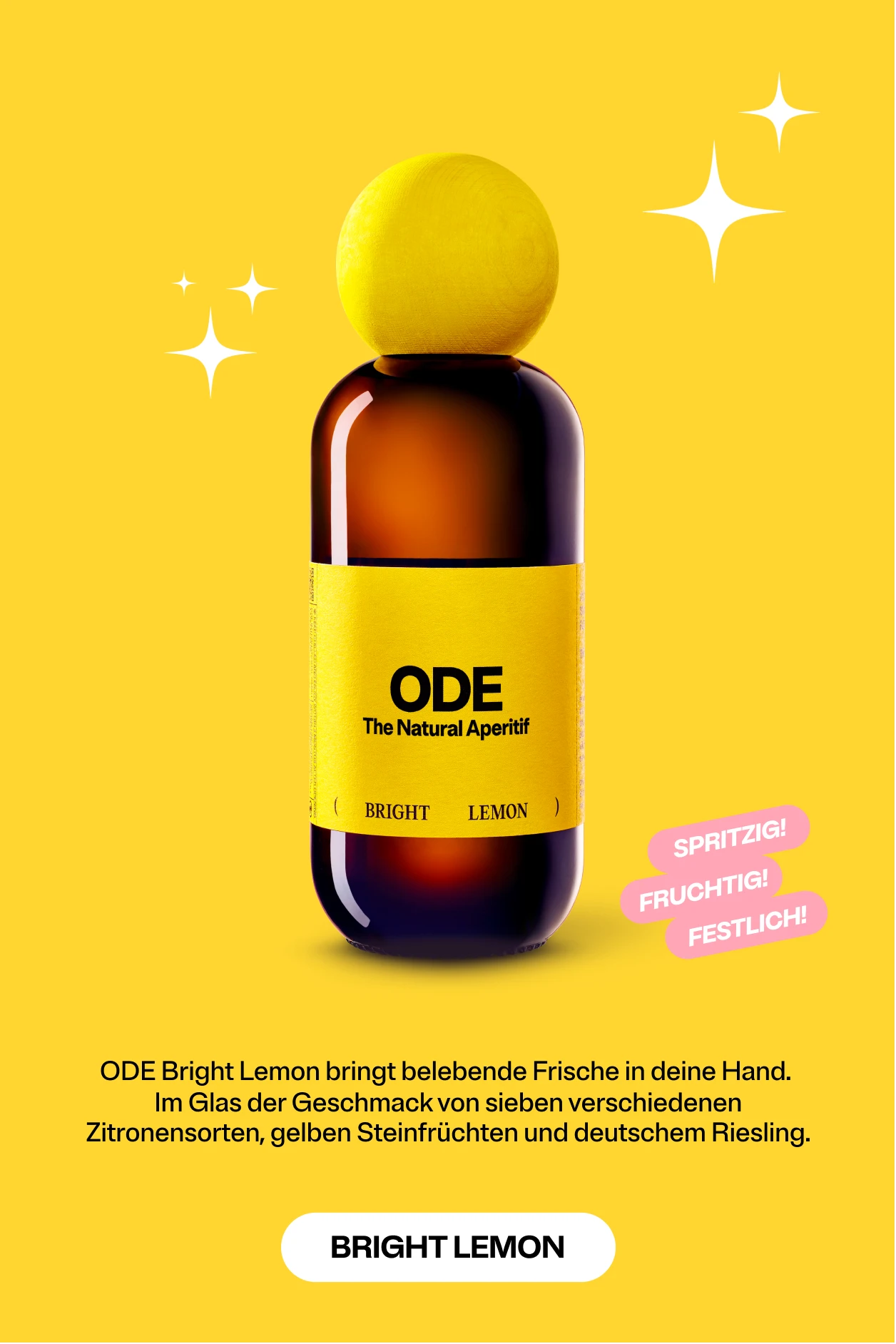 ODE hebt sich durch seine natürlichen Zutaten und die einzigartigen Geschmackskompositionen ab. Unsere Apéritifs sind frei von künstlichen Aromen und Farbstoffen und bieten ein authentisches und unverfälschtes Geschmackserlebnis. Bright Lemon und Ruby Wood sind sorgfältig entwickelt, um sowohl pur als auch gemischt zu überzeugen.